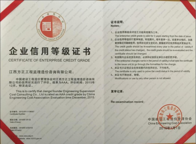 江西方正工程監(jiān)理造價咨詢有限公司于二OO三年五月在南昌市工商行政管理局注冊(注冊號:360100210024211),成立的有限責任公司,先后取得建設部及江西省建設廳頒發(fā)的建設施工工程造價咨詢企業資質、招投標代理機構資質、工程監(jiān)理資質及江西省財政廳頒發(fā)的采購代理資質,是專門從事工業與民用建筑工程造價咨詢、工程建設招投標代理、工程監(jiān)理及采購代理的公司。
